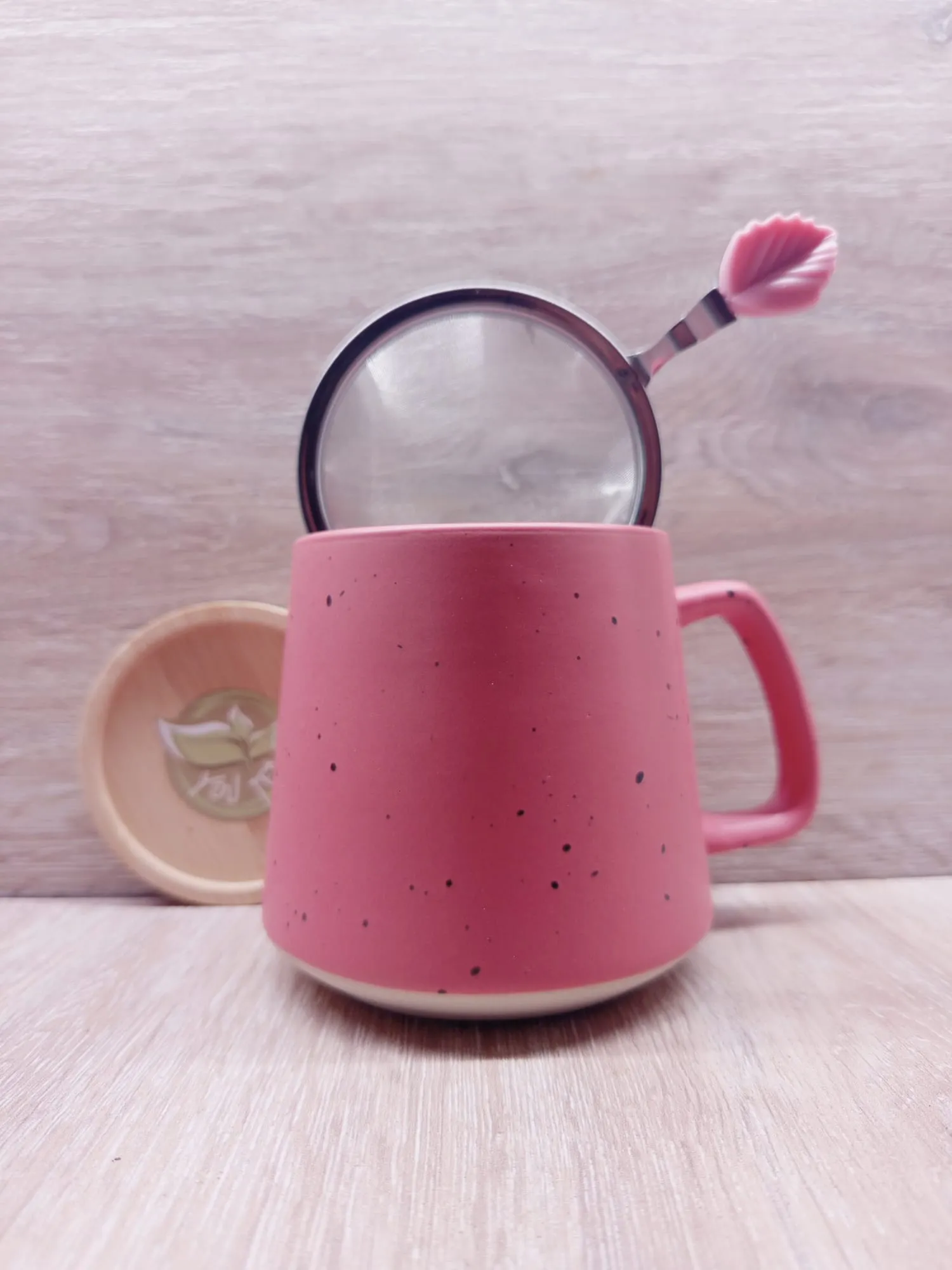 Il coperchio in bambù, posizionato su un supporto coordinato, completa l’insieme con un tocco di calore naturale. Il legno chiaro del bambù, materiale sostenibile e leggero, contrasta in modo armonioso con la ceramica e l’acciaio, conferendo alla tazza un’aura zen e meditativa. È un accessorio che protegge il tè dal freddo e dai contaminanti, mantenendone il profumo e il gusto intatti.